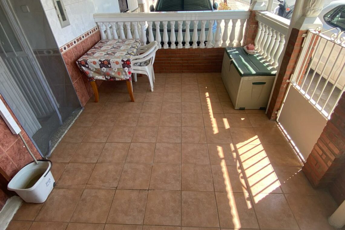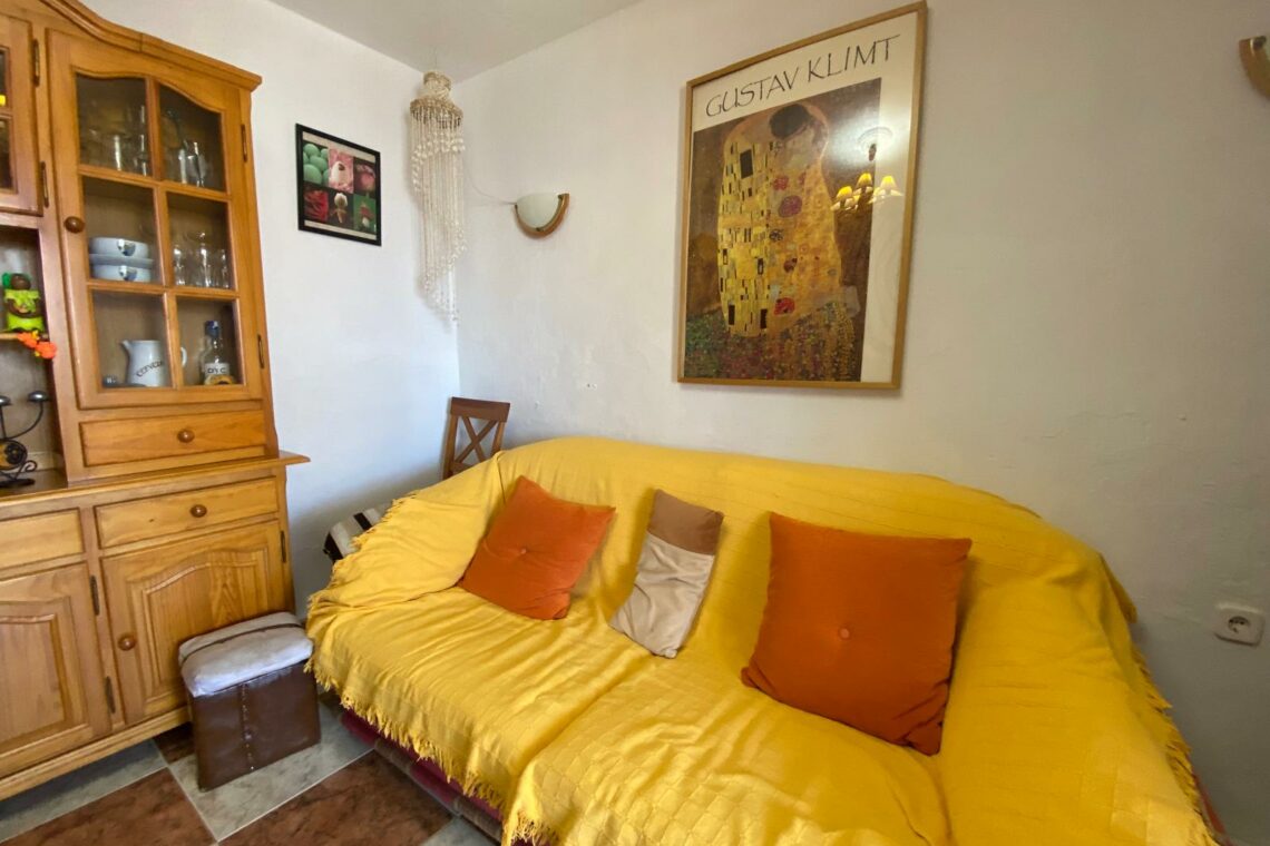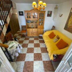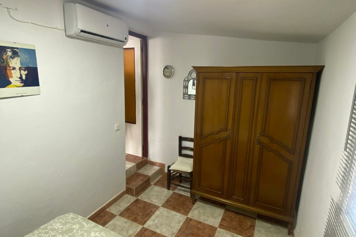 1º planta dividida en terraza delantera, salón, cocina, un baño reformado, un dormitorio, y patio trasero techado. 2º planta con un amplio dormitorio.